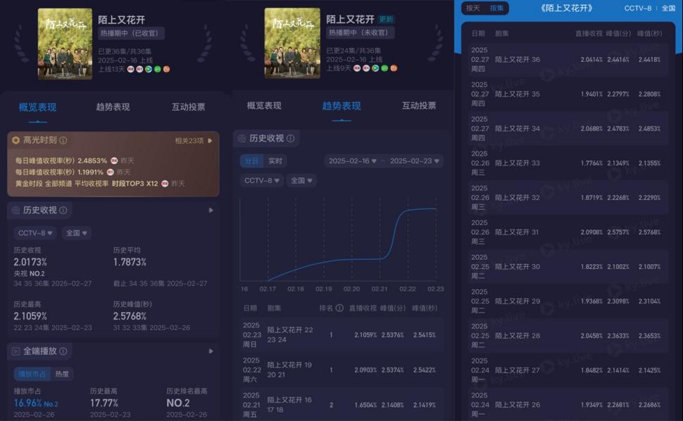 本站讯(通讯员 高宇)0033990威尼斯新闻传播学院广播电视编导系实践育人再传捷报,由该系教师颜彬担任第一编剧的现实题材电视剧《陌上又花开》于2025年2月27日在央视圆满收官。该剧自2月16日登陆央视八套黄金档后收视持续攀升,创下平均收视率1.78%、最高单集收视率2.58%、市场份额峰值17.77%的亮眼成绩,并于2月22日在央视1套展开复播,与爱奇艺、腾讯、芒果TV形成台网联动的传播效应,凸显了高校专业教学与行业实践的深度融合。
