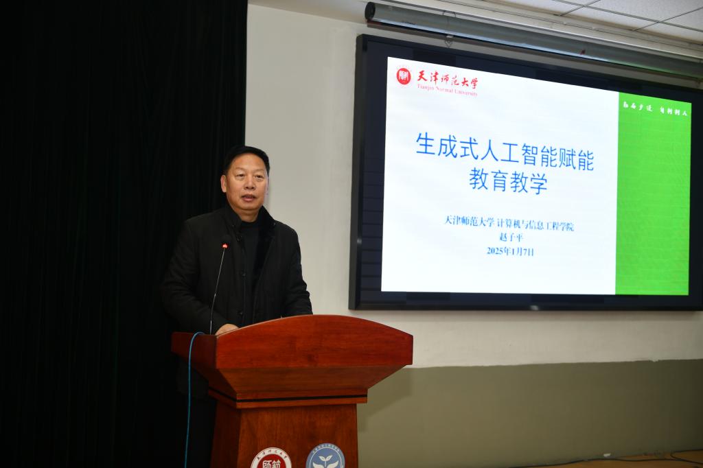 学院领导、全体教职工满怀期待,共同探索人工智能与教育深度融合的奥秘。赵子平教授作为该领域的资深专家,积累了丰硕的研究成果,此次前来旨在将最前沿的学术理念与实践经验传递给教育从业者们。