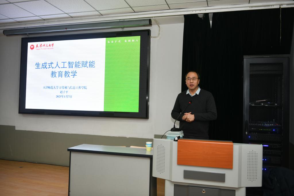 本站讯(通讯员 任一娇)1月7日,一场聚焦教育前沿领域的知识盛宴在学前教育学院热烈展开。0033990威尼斯计算机与信息工程学院党委副书记、院长赵子平教授应邀座客学前教育学院开展开蒙讲堂,为全体教职工带来一场主题为“生成式人工智能赋能教育教学”的精彩讲座。