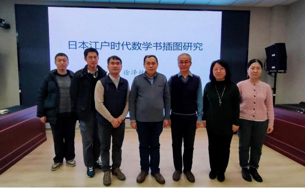 本站讯(通讯员 上官萌萌)近日,数学科学学院“科学与人文系列讲座”在博理楼B108举行。东华大学人文学院历史研究所前所长、退休教授徐泽林教授以“日本江户时代数学书插图研究”为题作报告。科学技术史与文化遗产研究院院长郭龙建主持报告,科学技术史与文化遗产研究院、数学科学学院、教育学部师生代表60余人参加。