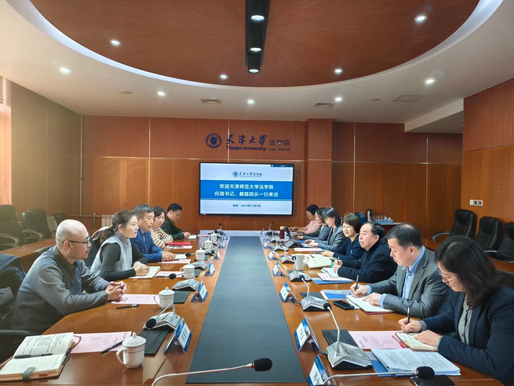 本站讯(通讯员 侯慧秀)12月3日,我校法学院领导班子一行前往天津大学法学院交流座谈。天津大学法学院院长孙佑海,党委书记管虹,党委副书记杨漫路,副院长杨健、于艳春、杨雅婷,我校法学院党委书记何璐,党委副书记、院长郝磊,副院长郭明龙、曲佳丽等参加座谈。