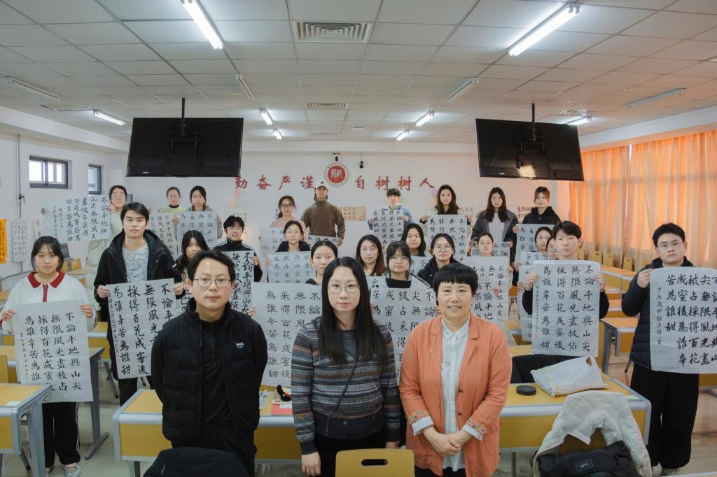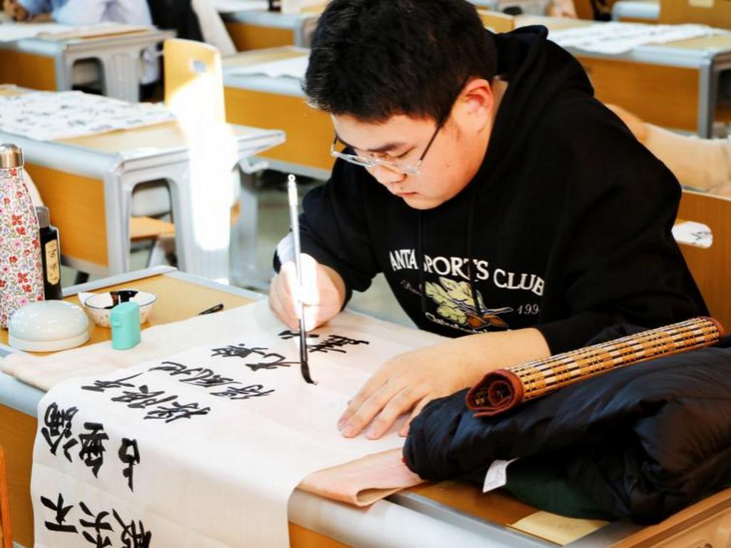 锋或婉转似溪流,或顿挫如洪钟。于提按间演绎书法精妙,展现艺术修养与卓越技艺。来自化学学院的高睿冰同学已研习书法多年,这次特意选了幅蕴含师者精神的古训创作。“软笔书法承载着中华传统文化精髓,站在赛场上,我满心敬畏。书写过程中,仿佛与古人对话,领悟师道传承。评委老师的点评让我突破了笔法瓶颈,希望以后多些这类活动,让古风墨韵润泽校园。”
