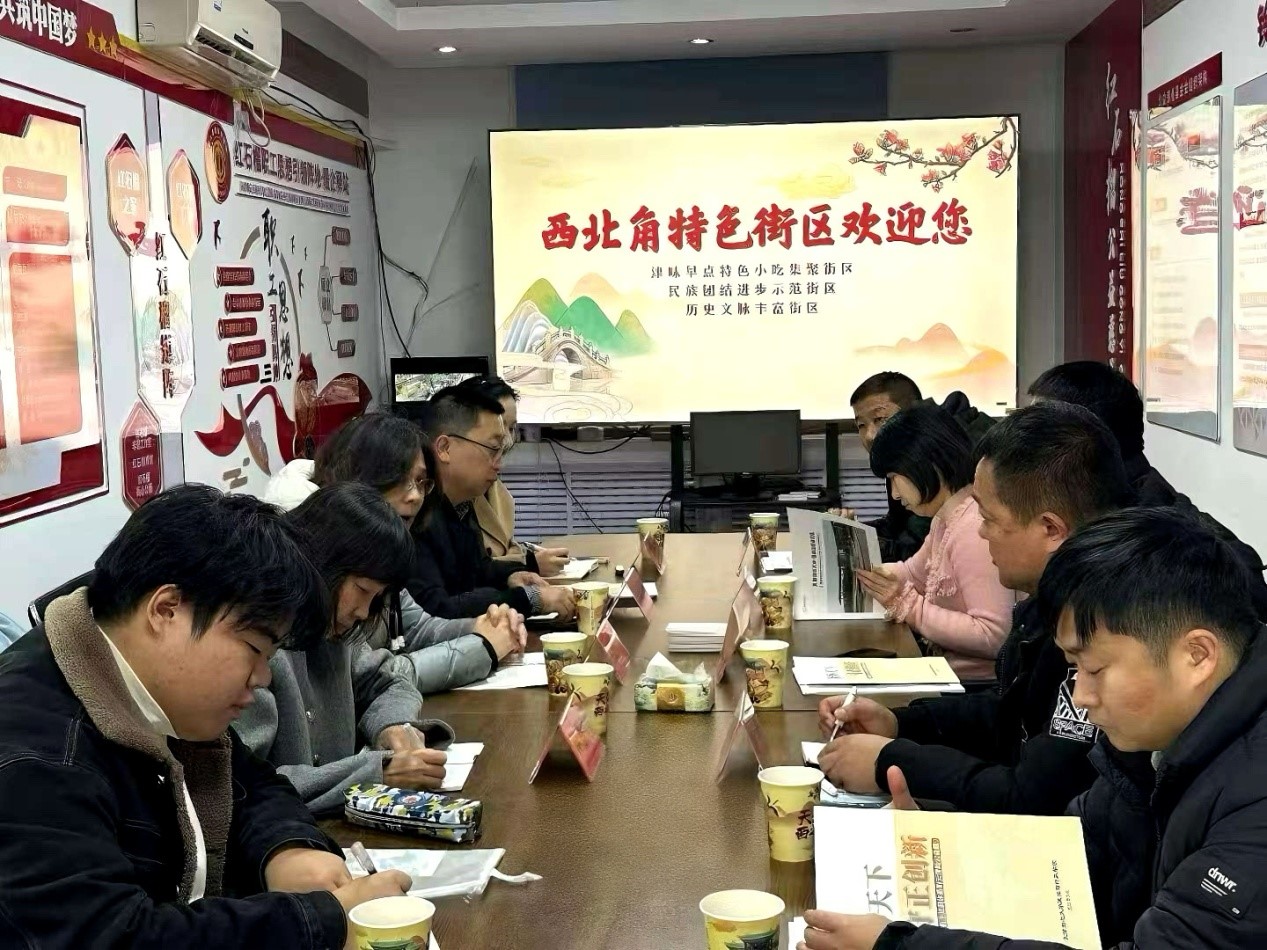 调研组一行首先前往了西北角特色街区进行实地学习考察。这里不仅是铃铛阁街道的一张靓丽名片,更是铃铛阁街道民族团结、文化繁荣的生动展现。调研组一行边走边看,边听边问,详细了解了街区的历史沿革、文化特色和商业发展等情况。在民族团结“红石榴展馆”内,一件件展品、一幅幅图片、一段段视频,生动展现了铃铛阁街道在民族团结工作方面的丰硕成果和宝贵经验,让调研组成员深受启发。