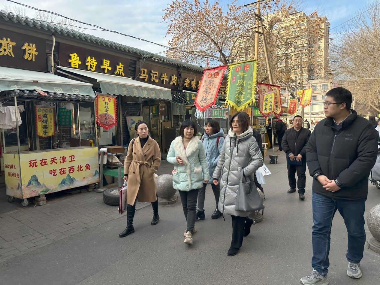 本站讯(通讯员 于淼)为深入学习贯彻党的二十届三中全会精神和习近平总书记关于社会工作的重要指示精神,落实立德树人根本任务,加快构建高质量就业服务体系,12月6日下午,政治与行政学院党委书记姜德红、党委副书记王晓博带领社会学系教师毕宏音、李晓菁前往天津市红桥区铃铛阁街道开展调研走访。铃铛阁街道党工委书记刘涛、主任刘华申,副主任刘子赫,以及西关北里社区党委书记刘伟、铃铛阁社区党委书记任翠蓉、新春花苑社区党委书记唐劼、经济办主任刘涛热情接待了调研组一行,双方围绕校地合作开展了深入交流。
