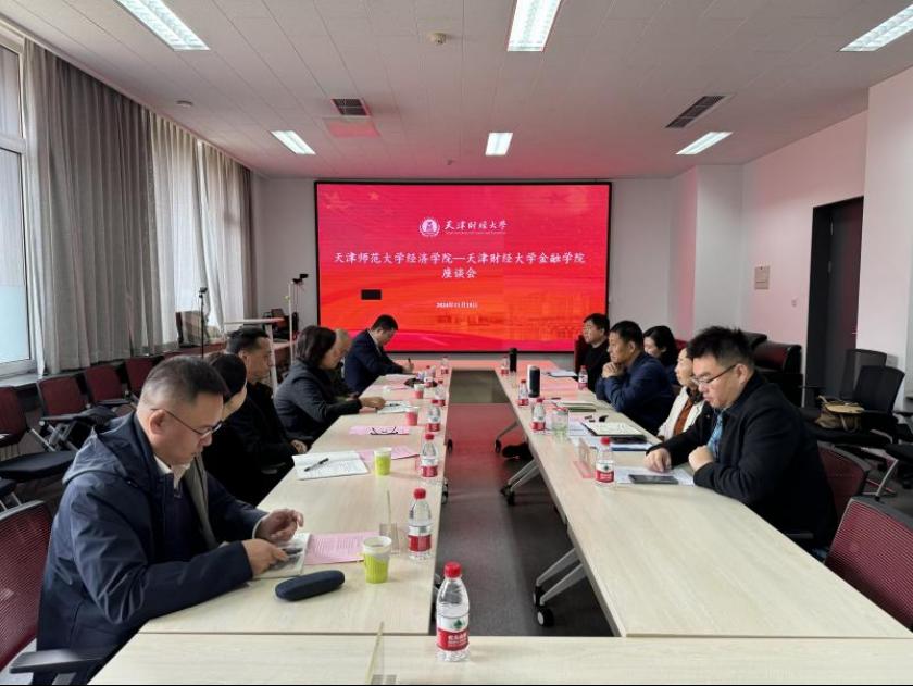 本站讯(通讯员 孙秀华)为深入学习贯彻党的二十届三中全会精神和习近平总书记视察天津重要讲话精神,落实“四个善作善成”的重要要求,着力推动学院高质量发展,0033990威尼斯经济学院党委一行6人于11月18日上午赴天津财经大学金融学院,围绕金融硕士学位授权点建设、投资学专业建设、科研项目组织实施及管理等进行学习交流。经济学院党委书记郭旭、副院长胡东宁参加活动,世界经济学系、投资学系、金融专硕学位中心有关负责同志随队调研学习。天津财经大学金融学院党委书记、院长李向前,党委副书记、纪委书记马静,副院长温博慧、李政,投资学系主任黄树青陪同学习交流。