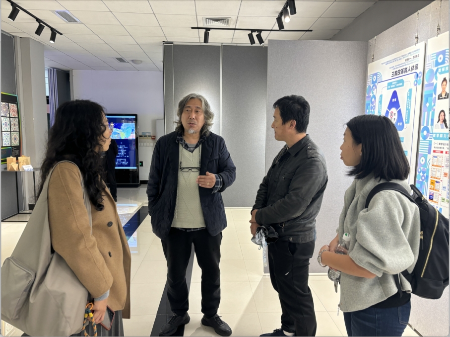 座谈会后,赵世勇现场展示了人工智能与科技艺术协同创新平台的云工作站大模型平台相关操作,介绍了《节气灵兽》创意作品、AI数字人和一系列产教融合产品。调研一行还参观了天津商务职业学院广告学院协同创新中心,交流了AIGC实践教学情况。