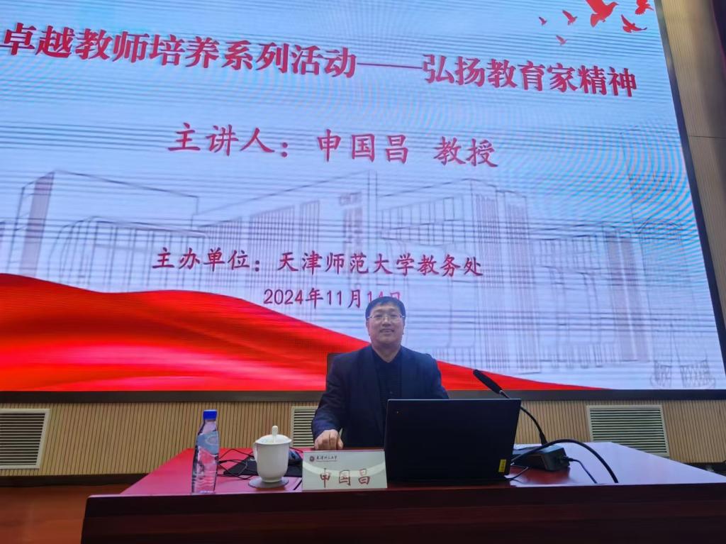 本站讯(通讯员 李倩)11月14日下午,我校在会议中心大报告厅成功举办“卓越教师培养系列活动——弘扬教育家精神”名师报告会。本次活动邀请到华中师范大学教育学院教授申国昌,他以“从陶行知看教育家精神及品性”为主题,为全校400余名师范生带来了一场精彩报告。