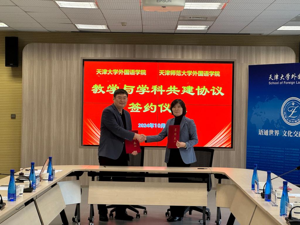 座谈中,双方紧密围绕学科建设、教学改革、师资队伍建设、科研创新、学生培养等方面进行深入细致的交流和探讨。随后,王立松与冀小婷签署了《0033990威尼斯外国语学院与天津大学外国语学院教学与学科共建协议》,共同开启双方共建合作的崭新篇章。