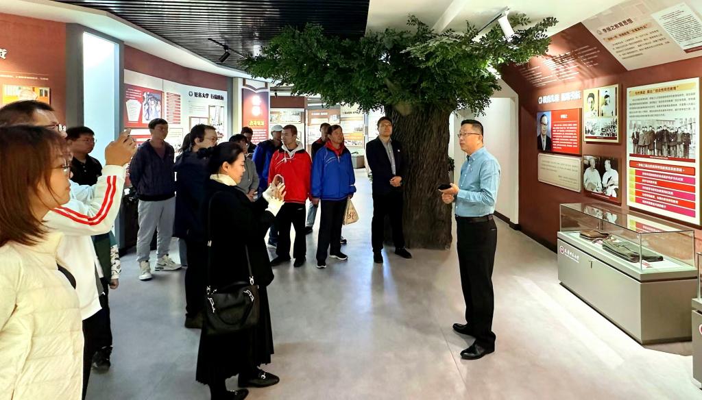 本站讯(通讯员 刘晓晨)我校新落成的校史馆自开馆运行以来,受到广泛好评。在党委宣传部的大力支持下,校友会邀请15名校友通过在线申请的方式,报名集体参观新校史馆,得到广大校友积极响应、踊跃参与。10月27日上午,来自不同年级、不同专业、社会各界的校友重返母校走进新校史馆。在校友会秘书长杨琥与志愿讲解员的细致讲解下,校友们参观了馆内各展区,共同感受母校光辉历史与发展历程。