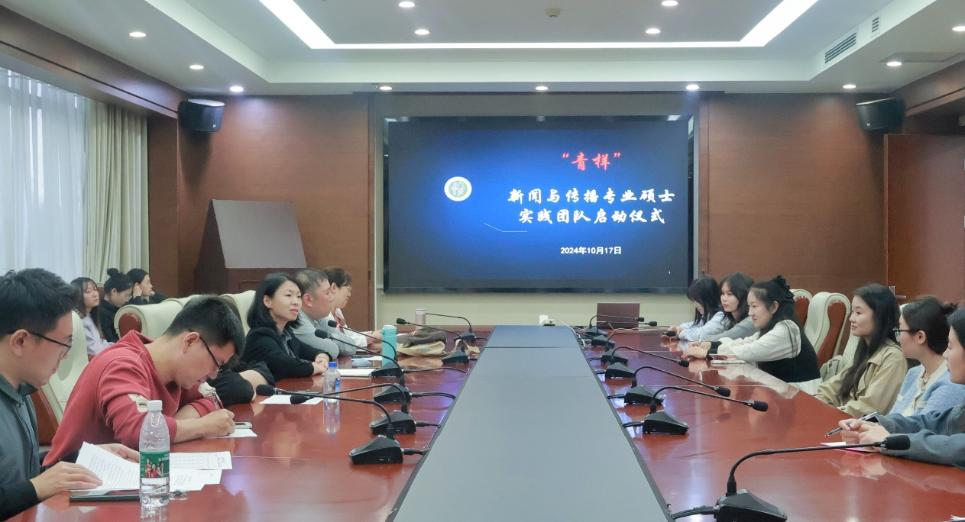 本站讯(通讯员 高宇)近日,新闻传播学院在会议中心第一会议室举行了“青样”新闻与传播专业硕士实践团队启动仪式。会议由新闻传播学院副院长林靖主持,新闻传播学院硕士生导师、实践团指导教师和2024级新闻与传播专业全体硕士研究生参加启动仪式。