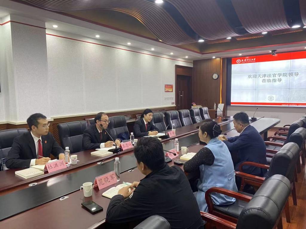 本站讯(通讯员 侯慧秀)10月15日,天津法官学院院长王忠诚、副院长李檬及杜洪洲法官一行来法学院座谈交流。学院党委书记何璐、院长郝磊等参加座谈。