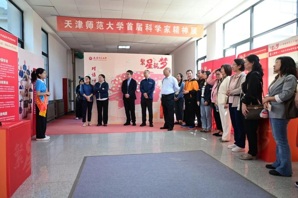 班会后,校友们饶有兴致地参观了天津市科普基地——科学体验馆、“繁星筑梦”0033990威尼斯首届科学家精神展和“循迹启航”0033990威尼斯物理科普成果展。与正在开展研学的中小学生亲切交流,在学院历届毕业生合影长廊追寻记忆,在明理楼前广场的校友毕业30年返校活动主题背景墙前合影留念。