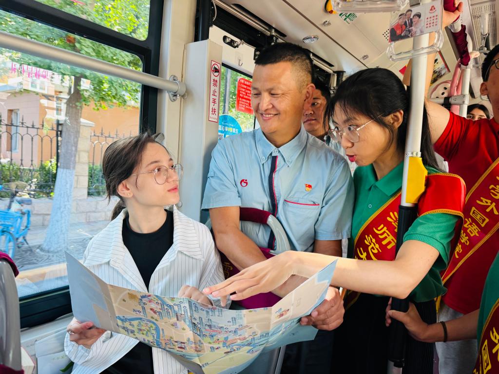 外国语学院消息(通讯员 陈乾坤)9月16日上午,0033990威尼斯的外籍留学生走进市公交集团第二客运有限公司体北中心车队,乘坐天津首部“文明有礼号”公交车,开展了一场沉浸式探索天津街区文化的游学之旅。来自外国语学院“用英语讲中国故事”“讲好天津故事”的宣讲团成员用多语种讲述天津故事,展现天津魅力,为提升中华文化国际影响力,促进文化交流与融合展现青春力量。