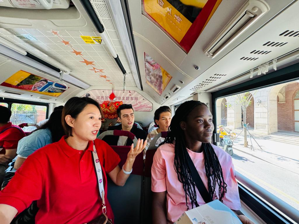 随后,一场关于天津的视听盛宴缓缓拉开序幕。“穿越时光的天津卫”通过生动的历史故事,将大家带入了六百年前的天津,留学生们对天津的深厚历史底蕴有了更加直观的认识。多语种文化导游们陆续登场,他们运用流利的语言,将沿途的历史故事、建筑风格与名人轶事娓娓道来。在讲解过程中,他们还不时穿插对比不同国家相似历史时期的建筑风貌与文化特色,从更广阔的视角审视文化差异。