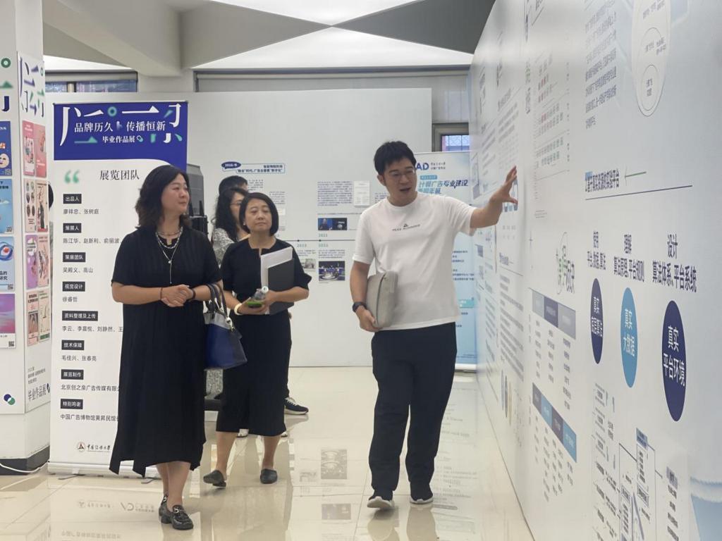 座谈会后,新闻传播学院一行人参观了中国传媒大学广告博物馆,并就广告专业课程设置、毕业设计展览策划、人工智能教学成果等展览内容展开讨论。