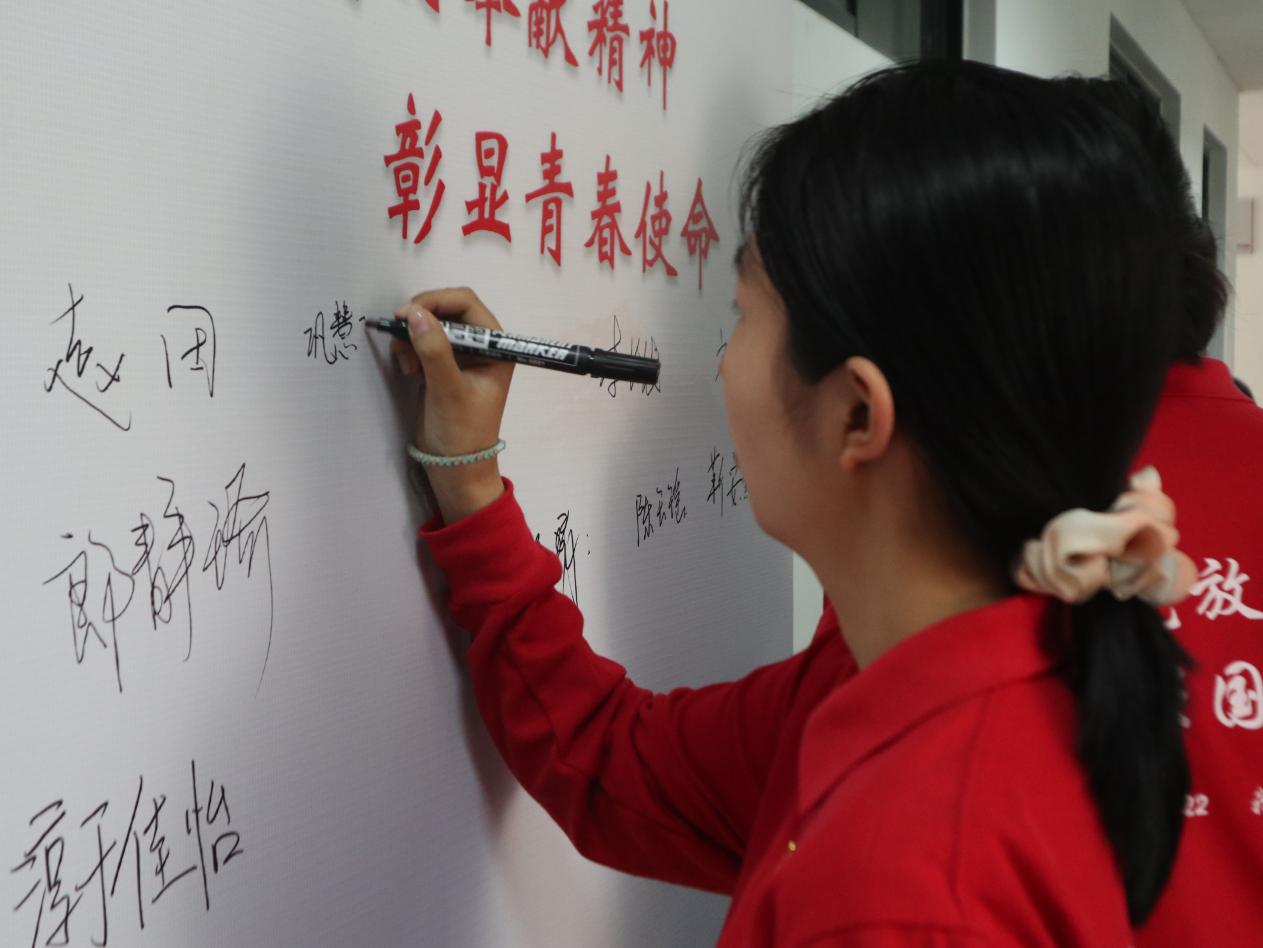 主题党日活动结束后,在场党员纷纷在“我是党员,我承诺”党员签字板上签名留影,进一步增强党员身份意识,牢记初心使命,激励他们为母校争光添彩。