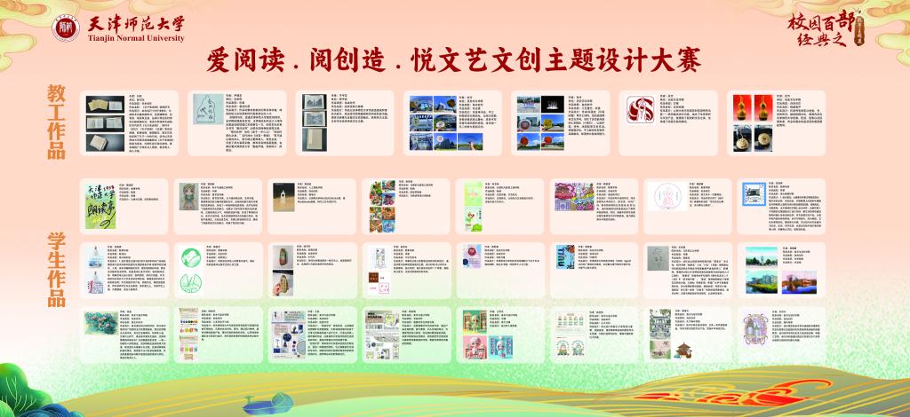 首届校园传统文化传承与阅读文创主题设计大赛面向全校教职工和在校生同期举办,以师范大学为设计元素,结合师范大学文化遗产、文化资源、学校图书馆理念,设计并形成文化创意、产品、作品等。旨在发掘校园文化资源,加强校园文化建设与保护,以师范大学为设计元素汇集一批高质量主题文创作品,不断丰富校园文化载体。大赛举办以来,得到我校师生的广泛支持,共收到师生作品一百多幅,充分展示了师生知校、爱校、护校、荣校的深厚情怀。