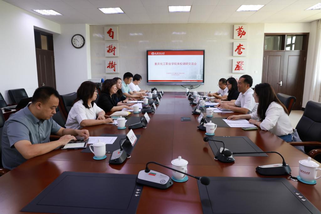 我校党委学生工作部部长李青、重庆化工职业学院党委学生工作部部长李小庆就两校“三全育人”综合改革特色和经验进行深入交流。