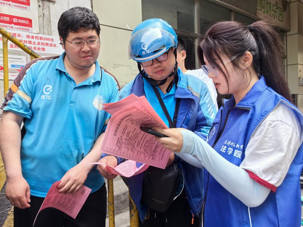 法学院消息(通讯员 王欣)居民按需“点单”,师生送法上门,这是法学院师生正在实施的“菜单式”普法上门法治宣传新模式。今年5月是第4个“民法典宣传月”,为深入学习贯彻习近平总书记视察天津重要讲话精神,自觉践行“四个善作善成”重要要求,5月23日,法学院师生前往河西区柳林街道开展“问需于居民”民法典普法活动。