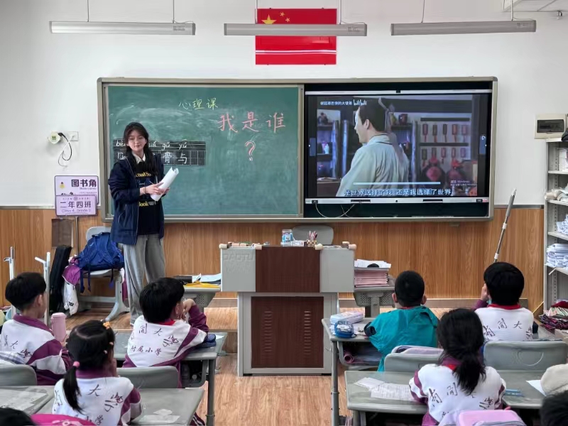 校内活动圆满结束后,新闻传播学院学生心理健康教育协会成员庆子凡和刘雅萱前往天津市南开大学附属小学开展心理健康科普团辅课。科普课堂主要围绕绘本阅读展开,通过故事讲述向该校二年级同学们解读如何全面认识自我,发挥自身优势。课堂最后,每位小学生制作了一张认识自我卡片,在生理自我、心理自我和社会自我三个方面写下了对自己的认识。