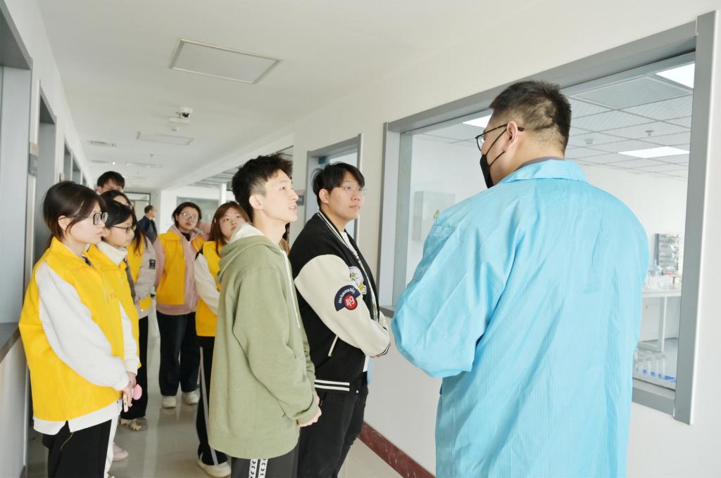 在天津铸金科技开发股份有限公司,师生一行在公司负责人的带领下,先后参观了检测设备实验室、科研开发实验室等地。在交流会上,公司监事会主席王高红介绍了企业发展历程、企业产品研发和实践领域、未来应用前景以及当前企业岗位招聘要求等。同学们主动交流、积极提问,并在现场投递简历。
