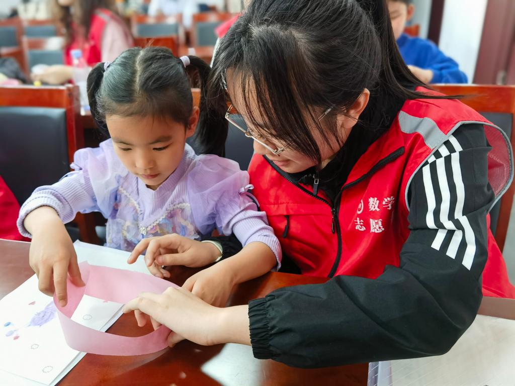 “青马”志愿者们为社区居民和外来务工子女带来了非常丰富有趣的活动。通过“趣味算数”和“数学小讲堂”,志愿者们引导孩子们探索数学的奥秘,激发他们对数学的兴趣和好奇心。志愿者们通过引入工业中的传送带、磁带原理以及莫比乌斯带的概念,让孩子们从实际生活中找到数学的影子,通过亲身体验和互动感受数学的魅力。此外,孩子们通过参与“猜数谜”“扑克速算”“填数独”等数学闯关游戏,在游戏中学习,锻炼了逻辑思维,提高了解决问题的能力,让数学变得更加有趣和富有挑战性。