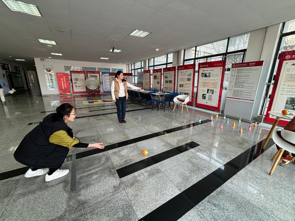 趣味运动会形式新颖,共设置“躺平保龄球”“沙袋掷准”“一心二用”三个项目。活动现场,老师们一改往日的严肃面孔,变身运动达人,在欢声笑语中放松身心,挥洒激情。
