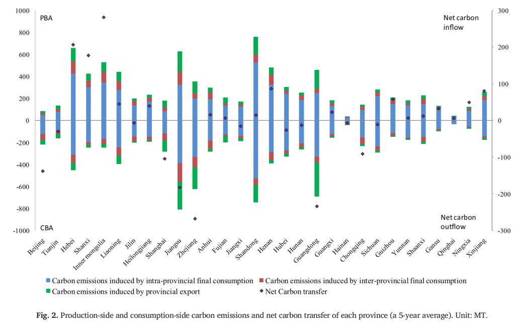 论文采用反事实研究对现有区域消费侧碳排放责任实施技术调整,调整后的省域消费侧碳排放体现了“减排多,补偿多”的分配原则,有利于更准确界定省域碳排放责任,并激励各省域通过减排技术提升来降低其碳排放责任。
