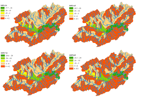 图2 未来不同气候变化情境下新安江流域总氮污染负荷变化空间分布