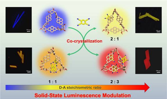 图1 结构及化学计量比多样的芘基功能骨架大环共晶用于发光调节