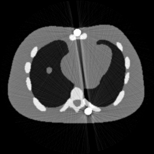图1 含金属伪影的 NCAT图像             图2 校正后的NCAT 图像